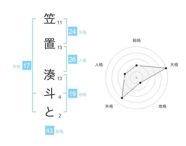 笠置 湊斗とさんの総格は43画の2点!