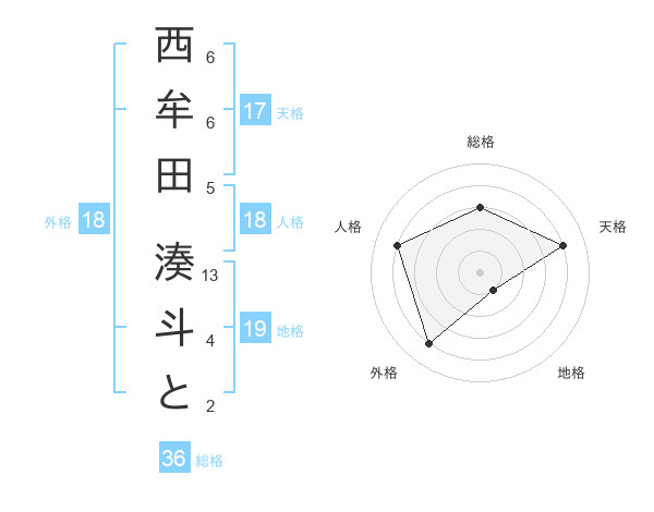 西牟田 湊斗とさんの天格は17画の4点!