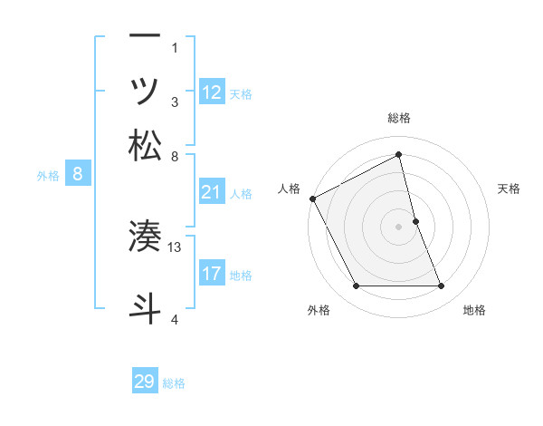 一ツ松 湊斗さんの総格は29画の4点!