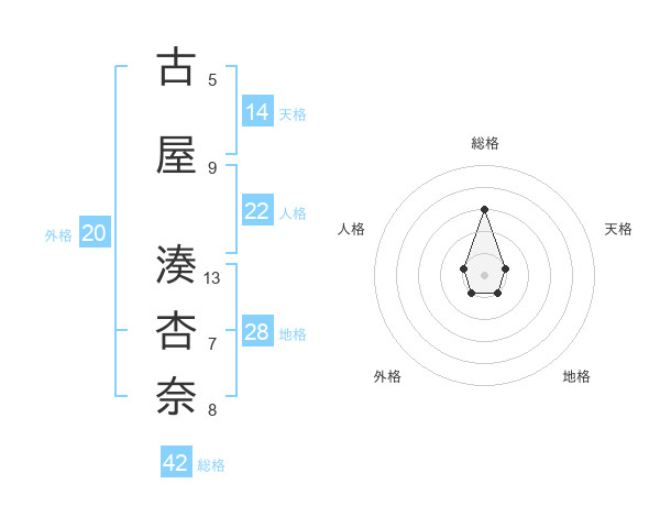 古屋 湊杏奈さんの総格は42画の3点