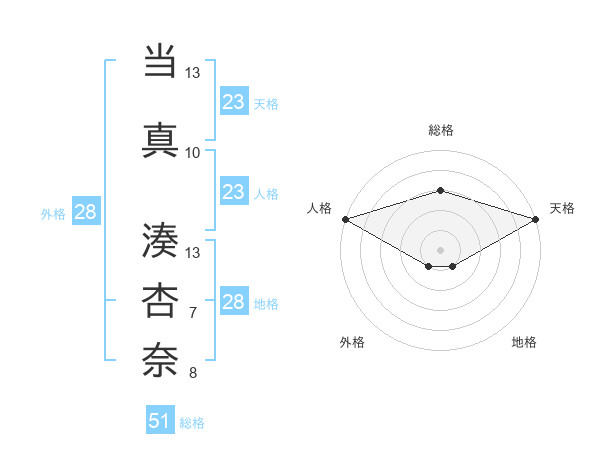 当真 湊杏奈さんを姓名の画数から五運を鑑定