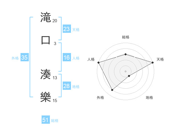 滝口 湊樂さんを姓名の画数から五運を鑑定