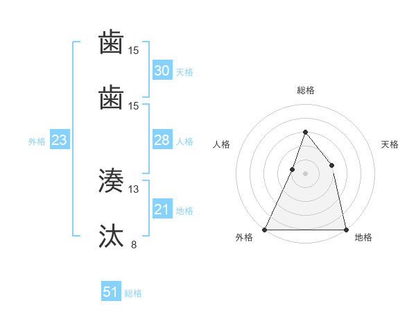 歯歯 湊汰さんの総格は51画の3点!