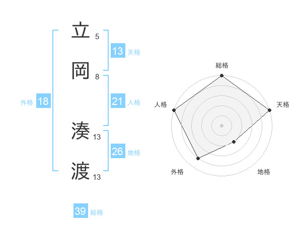 立岡 湊渡さんを姓名の画数から五運を鑑定