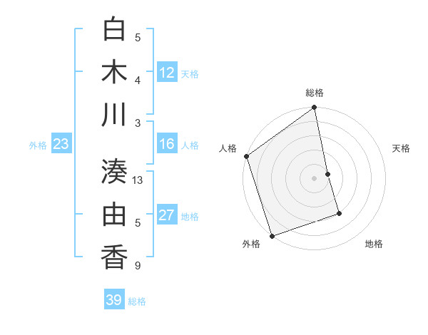 白木川 湊由香さんの外格は23画の5点!
