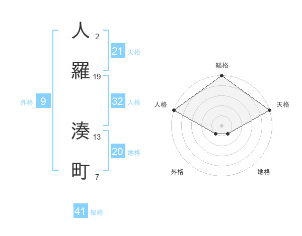 人羅 湊町さんの総格は41画の5点!