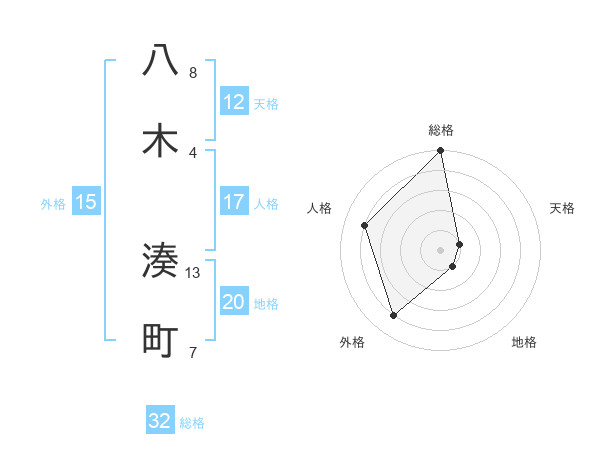 八木 湊町さんの総格は32画の5点!