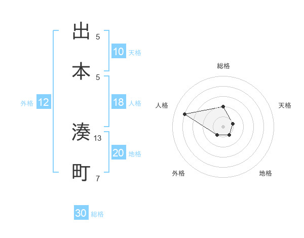 出本 湊町さんの総格は30画の2点!