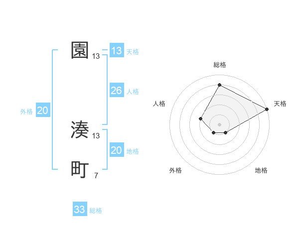 園 湊町さんの天格は13画の5点!