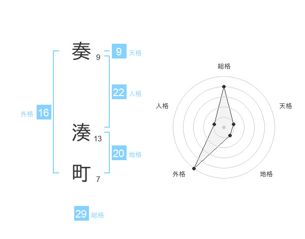 奏 湊町さんの外格は16画の5点!
