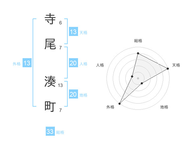 寺尾 湊町さんの天格は13画の5点!