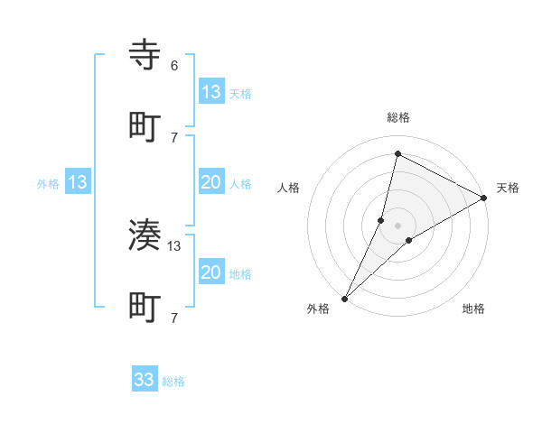 寺町 湊町さんの外格は13画の5点!