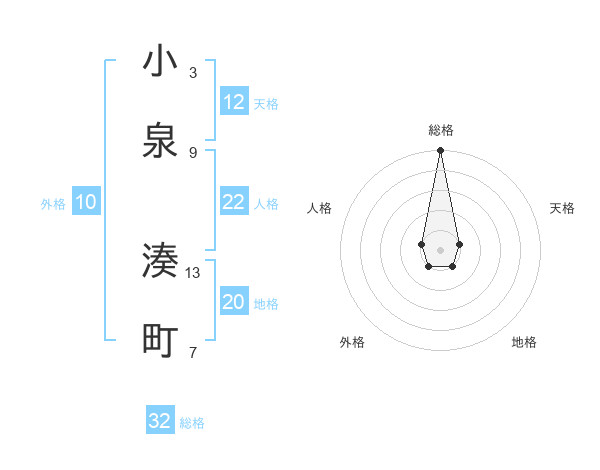 小泉 湊町さんの総格は32画の5点!