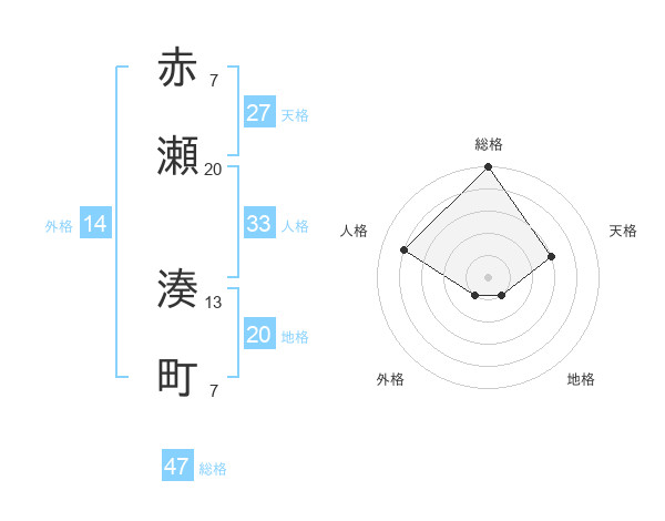 赤瀬 湊町さんの総格は47画の5点!