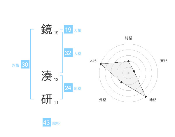 鏡 湊研さんの総格は43画の2点!