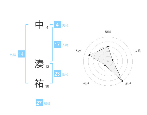 中 湊祐さんの総格は27画の3点