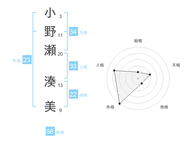 小野瀬 湊美さんの外格は23画の5点!