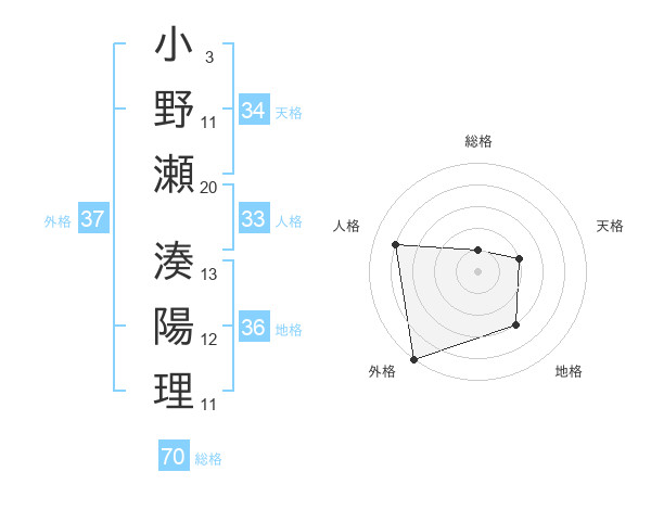 小野瀬 湊陽理さんを姓名の画数から五運を鑑定