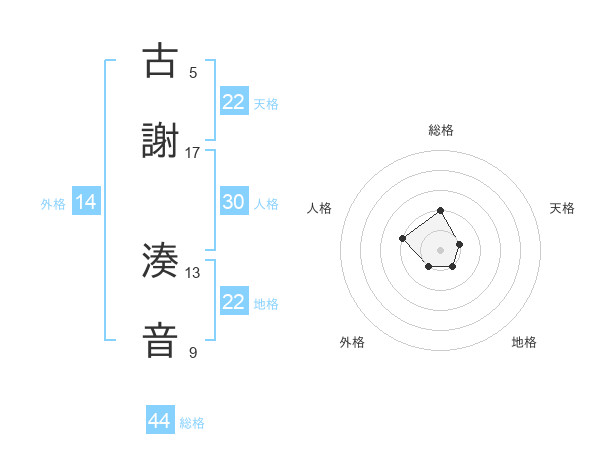 古謝 湊音さんを姓名の画数から五運を鑑定