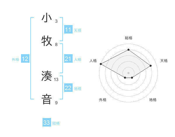 小牧 湊音さんを姓名の画数から五運を鑑定