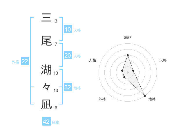 三尾 湖々凪さんを姓名の画数から五運を鑑定