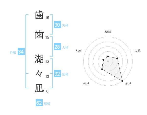 歯歯 湖々凪さんの外格は34画の2点!