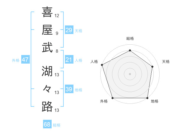 喜屋武 湖々路さんを姓名の画数から五運を鑑定