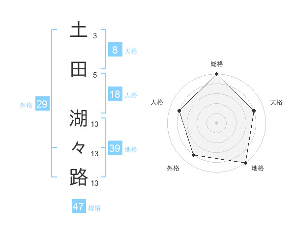 土田 湖々路さんを姓名の画数から五運を鑑定