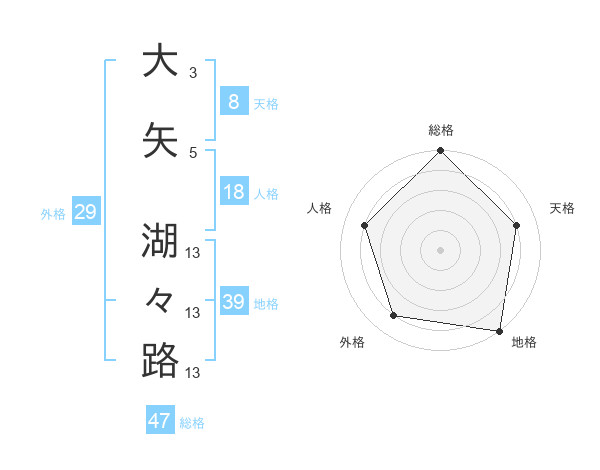 大矢 湖々路さんを姓名の画数から五運を鑑定