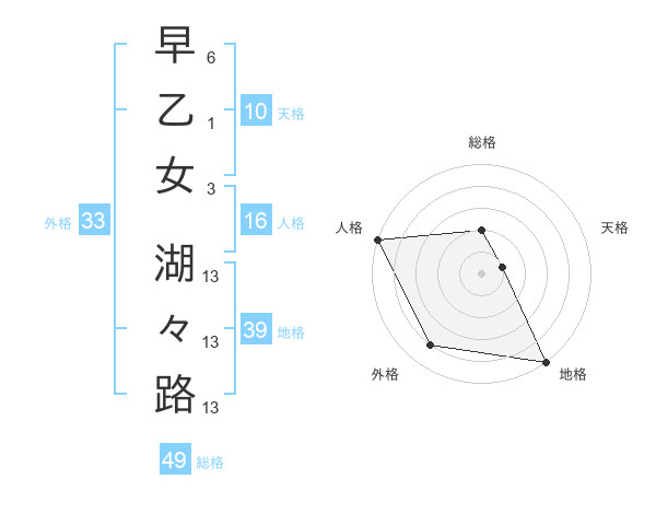 早乙女 湖々路さんの総格は49画の2点!