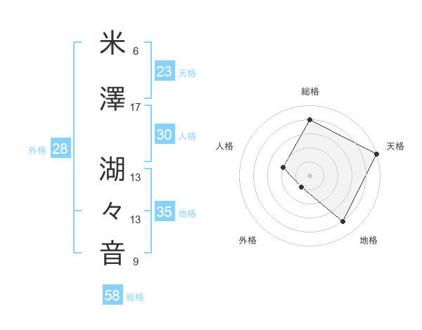 米澤 湖々音さんを姓名の画数から五運を鑑定