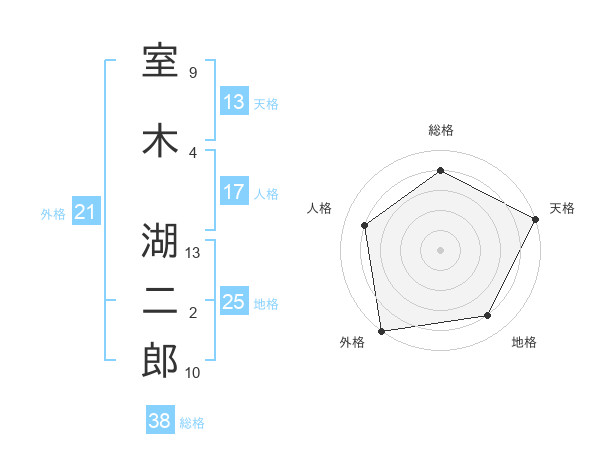 室木 湖二郎さんを姓名の画数から五運を鑑定