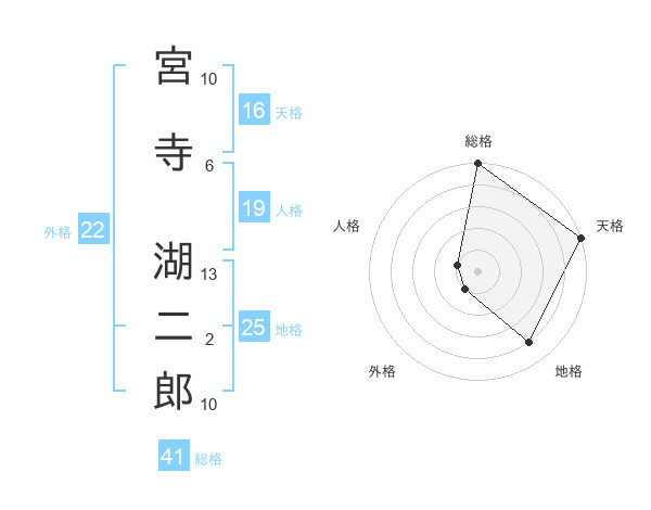 宮寺 湖二郎さんを姓名の画数から五運を鑑定