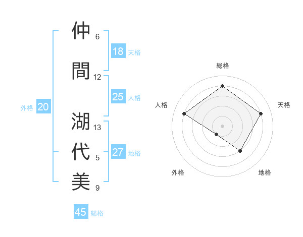 仲間 湖代美さんの総格は45画の4点!