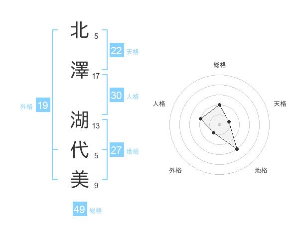 北澤 湖代美さんを姓名の画数から五運を鑑定