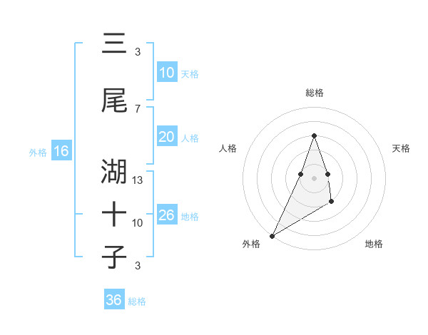 三尾 湖十子さんを姓名の画数から五運を鑑定