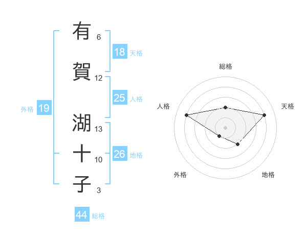 有賀 湖十子さんの総格は44画の2点!