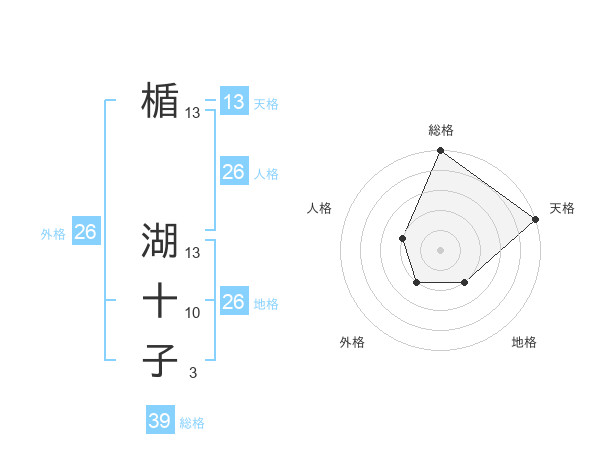 楯 湖十子さんの天格は13画の5点!