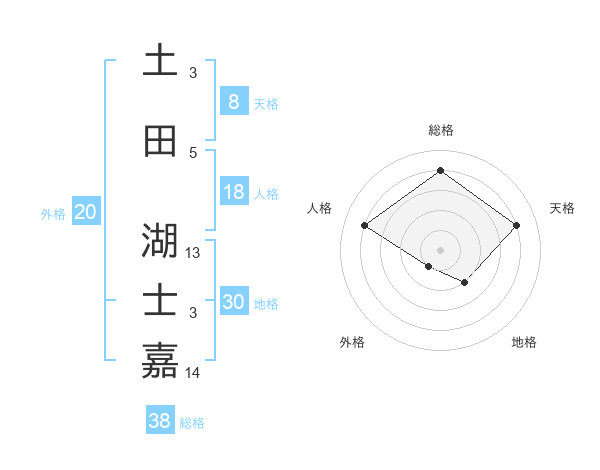 土田 湖士嘉さんの総格は38画の4点!