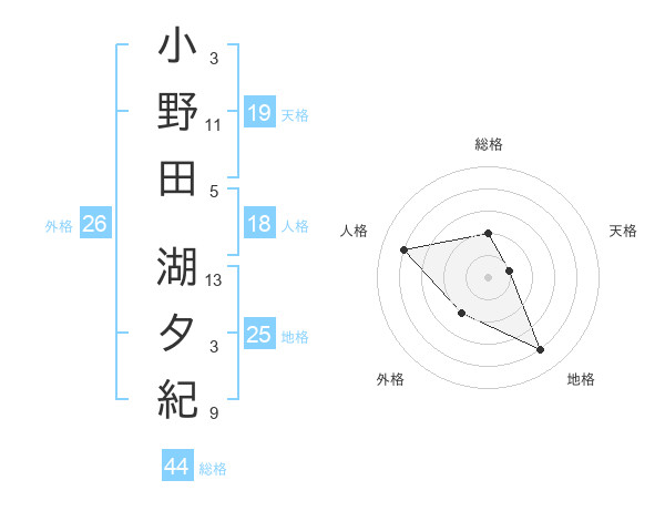 小野田 湖夕紀さんの総格は44画の2点!