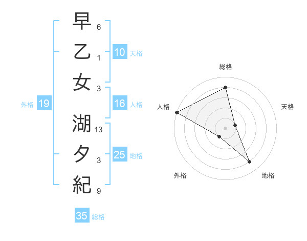 早乙女 湖夕紀さんを姓名の画数から五運を鑑定