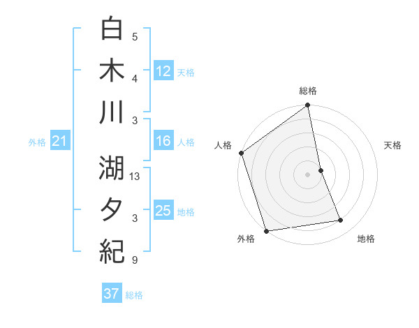 白木川 湖夕紀さんの総格は37画の5点!