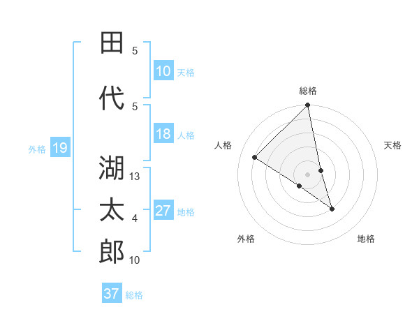 田代 湖太郎さんの総格は37画の5点!
