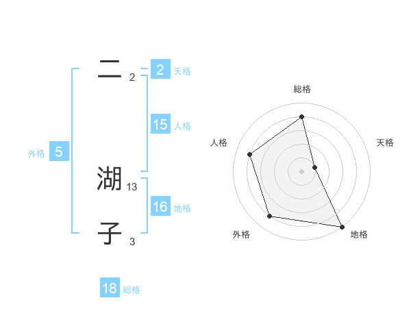 二 湖子さんの総格は18画の4点!