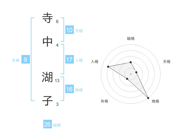 寺中 湖子さんを姓名の画数から五運を鑑定