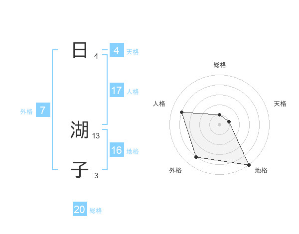日 湖子さんの総格は20画の1点!