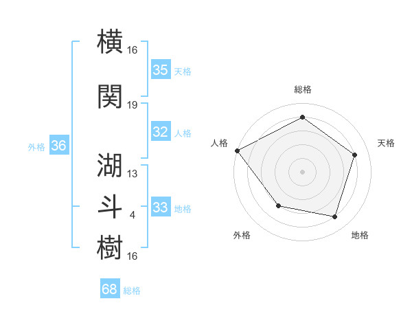 横関 湖斗樹さんを姓名の画数から五運を鑑定