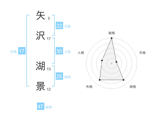矢沢 湖景さんの総格は47画の5点!