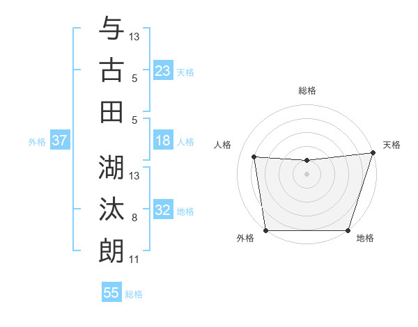 与古田 湖汰朗さんの外格は37画の5点!