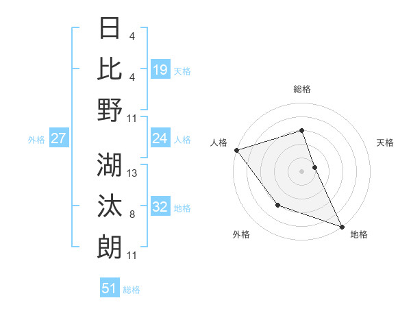 日比野 湖汰朗さんの総格は51画の3点!
